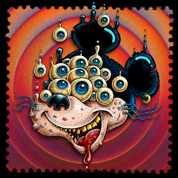Psychedelic '60s imagery collides with '90s post-industrial iconography. To this collision of the organic vs. the mechanical worlds he adds humor, social commentary and fantasy. Even in the smallest details there are messages. All of Emek's artwork is originally hand-drawn and then hand- silkscreened for each actual concert or event, usually in limited editions of around 300.