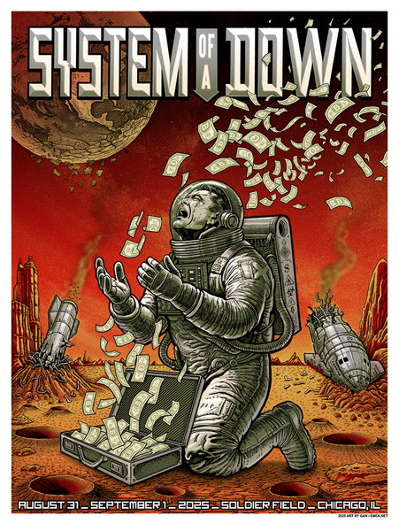 Over the last decade, Emek's work has been shown in galleries across the United States, in Berlin, London and Tokyo. In December 2007, Billboard named the top 25 rock posters of all time. EMEK garnered 3 spots on the list, the most of any single artist. You can order one of these before he becomes really famous, or really homeless by signing up for our eMail to receive New Release info.